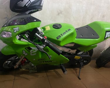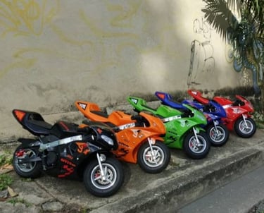 Cada Pocket Bike viene equipada con un motor de 49 cc y 2 tiempos, pensado para ofrecerte una experiencia llena de adrenalina, diversión y velocidad segura.