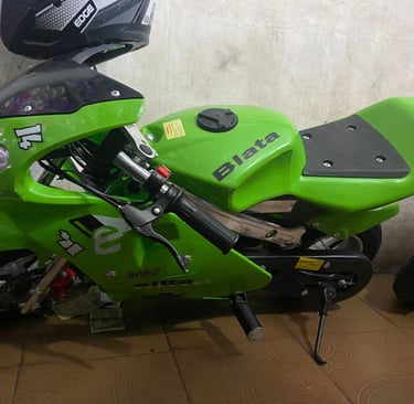 Estas minimotos están equipadas con un potente motor de 49 cc y 2 Tiempos, diseñadas para la diversión, la emoción y la velocidad controlada.